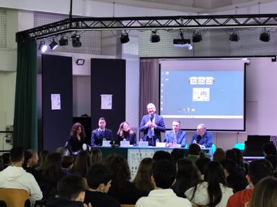 Si è svolto lunedì 23 febbraio 2026, alle 9:30, presso l’Auditorium dell’Istituto Comprensivo “Perri–Pitagora-Don Milani”di Lamezia Terme, il quarto appuntamento del progetto “Chiediti se sono felice”, rivolto agli studenti delle classi terze della scuola secondaria di primo grado. Il progetto, ideato da Alfonso Toscano, presidente dell’associazione “Il Dono – Volontariato Regionale Trapiantati Epatici”, e da Annamaria Stanganelli, già garante regionale della Salute, nasce con l’obiettivo di promuovere tra i giovani una riflessione autentica sul benessere emotivo, sul rispetto dell’altro e sulla responsabilità individuale e collettiva, attraverso testimonianze dirette e momenti di confronto.